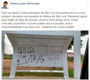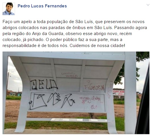 Vereador: Se fosse só pichação, era bom passe pela rua do Passeio, na calçada do hospital socorrão I, e veja as condições do abrigo, tá caindo, os ferros estão aparecendo, está para acontecer um acidente,descaso da SMTT.