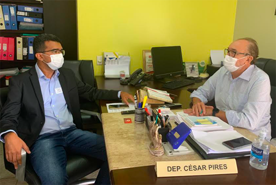 O deputado estadual César Pires recebeu nesta quinta-feira (13) a visita do prefeito de São Pedro dos Crentes, Lahesio Bonfim. Os dois conversaram sobre a conjuntura política e as perspectivas para as eleições de 2022 no Maranhão, inclusive sobre mudanças partidárias e a disputa pelo governo estadual.