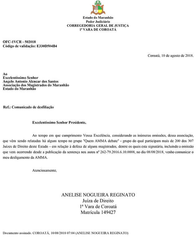 Abaixo, segue a Nota da AMMA na íntegra: