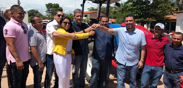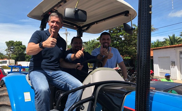 Ao lado do prefeito Naldo Batista e o vice Antônio Flora, Fabio Macedo e Aluísio, participaram da inauguração de uma Agência do INSS na cidade e também realizaram a entrega de um trator, que será utilizado pelos produtores rurais do município.