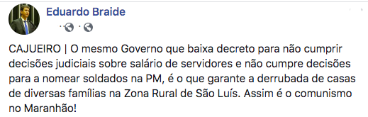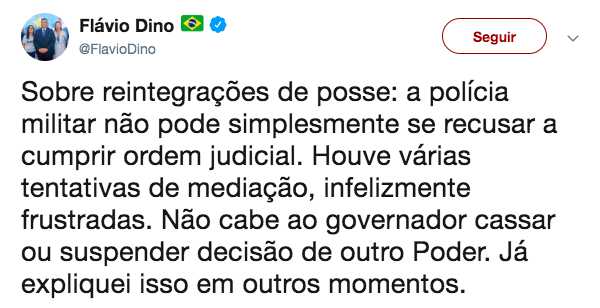 No início da semana, o Blog destacou um eventual recuo do Governo Flávio Dino, diante do lamentável episódio de despejo de famílias da comunidade do Cajueiro, na Zona Rural de São Luís (reveja).