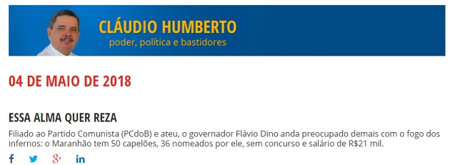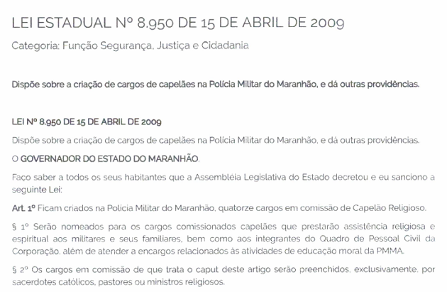O curioso é que o Maranhão foi na contramão da maioria dos estados brasileiros, que simplesmente aboliram a figura do capelão. Na gestão do comunista, com o aumento absurdo, o Maranhão passou a ter dez vezes mais capelães que os estados que aparecem em segundo lugar, com apenas cinco capelães.