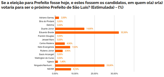 “Por amor a São Luís e, passando por cima de todas as diferenças que, porventura, existiram durante a pré-campanha e a campanha, hoje, 19, eu sou 19. E dia 29, nas urnas, eu quero pedir aos meus amigos eleitores que atendam o meu pedido e também votem Eduardo Braide 19. Com muita humildade e serenidade, declaro meu apoio no segundo turno a Eduardo Braide”, afirmou Wellington ao lado de Braide, que ele também apoio no 2º Turno em 2016.