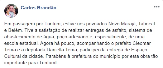 “Até cinco anos atrás, estávamos no mesmo patamar do Pìauí, ministro, mas o ex-ministro da Saúde, Marcelo de Castro, deputado federal por aquele Estado, atuou para que o Piauí tivesse tal elevação. Essas diferenças devem ser corrigidas, já que somos um só país, somos um mesmo povo”, disse Cleomar Tema.