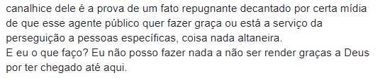 “Essa decisão, embora ocorra depois de uma longa e exaustiva batalha minha, enquanto fui por todo esse tempo pré-julgada e, por muitas vezes, agredida, só renova as minhas forças, a fé na verdade e na Justiça, principalmente a de Deus. Eu reafirmo, como faço em todos os momentos, que a minha consciência está tranquila, pois sempre agi de forma correta e nunca fiz nada que pudesse desabonar a minha conduta como governadora do meu estado”, afirmou. Ela foi defendida na ação, também pela advogada Anna Graziella Neiva.