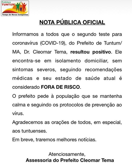 O ex-prefeito Cleomar Tema ainda não se manifestou após o lamentável desabafo da deputada Daniella.