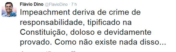 Na verdade estamos diante de um aproveitador, o homem sem alma e sem moral, um cínico que apenas busca para si todos os instrumentos de poder para viabilizar o seu projeto de hegemonia política. E chega a ser patético o seu devaneio. Sim, meus amigos e amigas, Flávio Dino sonha em ser presidente da República. Pouco importa se o país está em farrapos, se a economia entra em colapso, se a presidente traiu o seu povo, se enganou seus eleitores com promessas matematicamente feitas pelos marqueteiros apenas para ganhar a eleição e logo em seguida abandonadas. Para Flávio Dino a única coisa que importa é o poder. Para ele não interessa a opinião dos maranhenses em relação à presidente Dilma. Não quer sequer ter o trabalho de saber o que pensa a sua gente. Decidiu ser o paladino da “democracia contra o golpe” mesmo que isso signifique massacrar o povo do Maranhão e do Brasil!