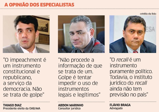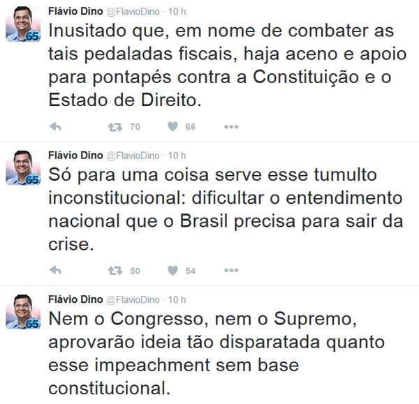 Flávio Dino não tem o dom da política, basta ver a insatisfação de suas bases com menos de um ano de governo. Flávio Dino não tem carisma, basta constatar sua fama de prepotente e arrogante. Flávio Dino não tem popularidade, basta que lembremos as vaias recentes em Lago da Pedra. E Flávio Dino também não tem seguidores! Basta verificar que seu governo é baseado na dominação e na subjugação das pessoas pelo aparelhamento estatal comandado por ele. Quem não o conhece e o vê empunhando a Constituição do Brasil, em defesa da presidente Dilma, afirmando que é golpe o impeachment, pode até se enganar por algum tempo. Mas, um olhar aprofundado na história do próprio Flávio Dino destrói qualquer imagem de “bom moço”. Quem é Flávio Dino para falar de golpe? Logo ele que processou e tentou tomar TODOS OS MANDATOS de pessoas que o derrotaram nas eleições de prefeito e governador que participou? Sempre que era derrotado, recorria aos tribunais.