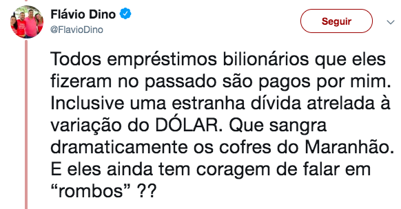 O comunista também esquece que além das críticas pela incoerência de contrair empréstimos, a sua gestão é bastante criticada pela ausência total de transparência quando da realização desses empréstimos. Os deputados oposicionistas afirmam que Flávio Dino, quando da contratação de empréstimos, não informa o percentual de juros e as vezes nem mesmo o nome do banco.