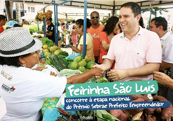 Pela terceira vez, o prefeito de São Luís, Edivaldo Júnior (PDT), irá concorrer ao prêmio de Prefeito Empreendedor. Mais uma vez, a Feirinha São Luís fará com que Edivaldo concorra ao Prêmio Sebrae Prefeito Empreendedor.