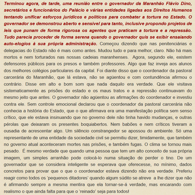 O curioso é que o embate dos governistas foi antecipado em rede social e blogs, mas o Governo Flávio Dino, mais uma vez, mostrou não ter a capacidade de evitar crises, ao contrário, o próprio governador tem se encarregado de criar algumas.