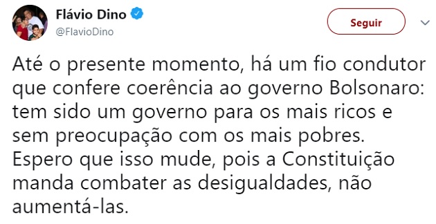 O curioso é que Dino foi recebido justamente por Mourão, aquele mesmo que ele “detonou” nas redes sociais. O comunista chegou a afirmar que Bolsonaro jamais poderia deixar Mourão assumir o comando da Presidência da República, pela falta de tato e experiência política. No entanto, mesmo com todas essas “qualidades”, o governador maranhense acabou o procurando para uma reunião.
