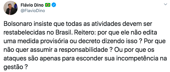 “Reitero o que digo há semanas. No Maranhão, nem governador, nem outro político, nem associação ou similar, prescrevem remédios. Quem decide isso são os MÉDICOS que atendem os pacientes. Tão simples de entender. Menos quando há mera politicagem ou apologia de ideologias delirantes”, afirmou o comunista.