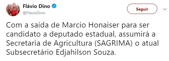 O governador Flávio Dino utilizou as redes sociais para, muito provavelmente, criticar o deputado estadual Wellington do Curso. Entretanto, de maneira covarde, o comunista não teve se quer a coragem de endereçar a sua crítica.
