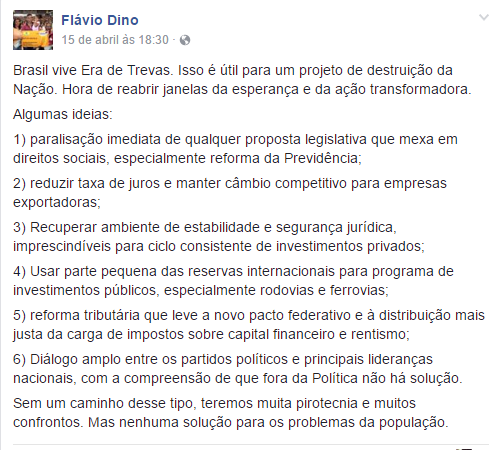 O delator fala que o lobby do governador do Maranhão ocorreu em 2015, no início do segundo mandato da ex-presidente Dilma Rouseff (PT), de quem Dino era aliado.