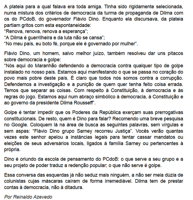 Dino, pelo visto, seguirá com o seu extinto de perseguidor, mas o curioso é que apenas aqueles que não lhe tomaram bênção estão e serão perseguidos. Já aqueles que se sujeitaram, como covardes e frouxos, as vontades insanas do governador terão seus supostos crimes anistiados.