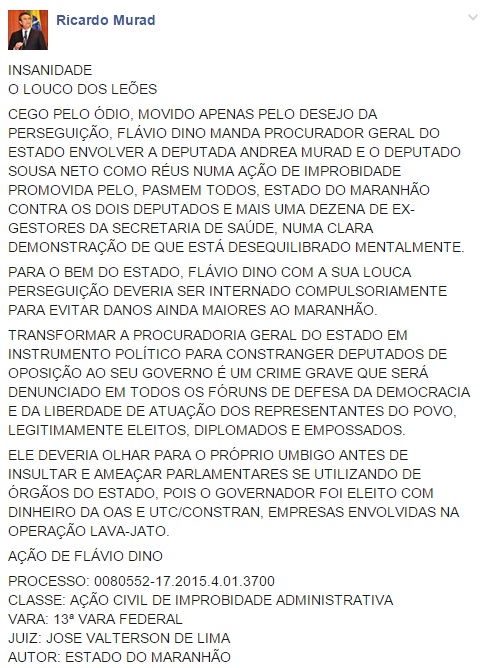 Assim segue o Governo Flávio Dino, com pouco trabalho próprio e muito ódio e vingança.
