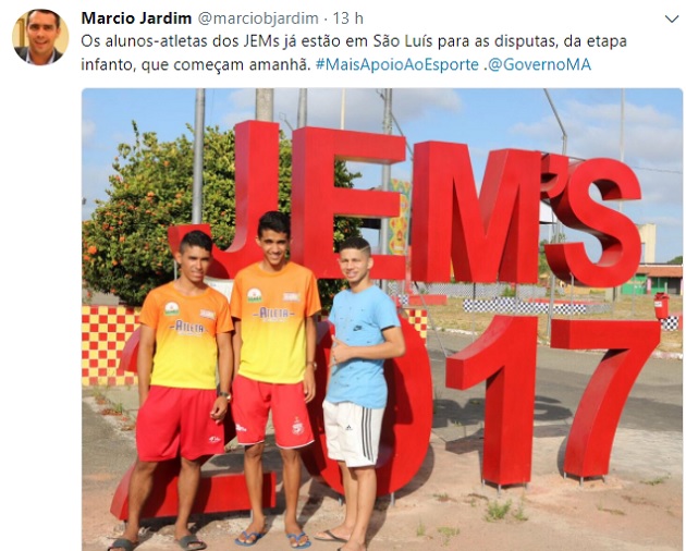 Na segunda-feira (16), em pleno Jogos Escolares Maranhenses, acontecerá a troca do comando da Secretaria de Esporte, sai o petista Márcio Jardim para a chegada do PP no Governo Flávio Dino, já que o novo secretário será Hewerton Carlos Rodrigues Pereira, indicado pelo deputado federal André Fufuca (PP).