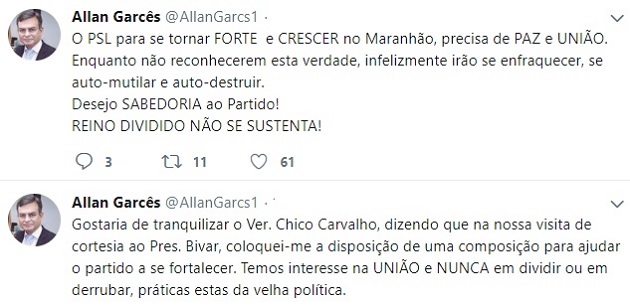 Além disso, também vale lembrar de que os dois deputados federais eleitos pelo PMN – Eduardo Braide e Pastor Gildenemyr – já foram convidados para ingressar no PSL, uma vez que o PMN não conseguiu alcançar a cláusula de barreira.