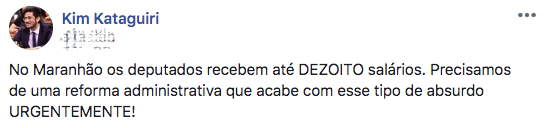 A fake news de Katguiri foi com relação aos salários dos deputados estaduais maranhenses. O deputado federal, para defender um reforma administrativa, disse que no Maranhão os deputados estaduais do Maranhão recebem até 18 salários.