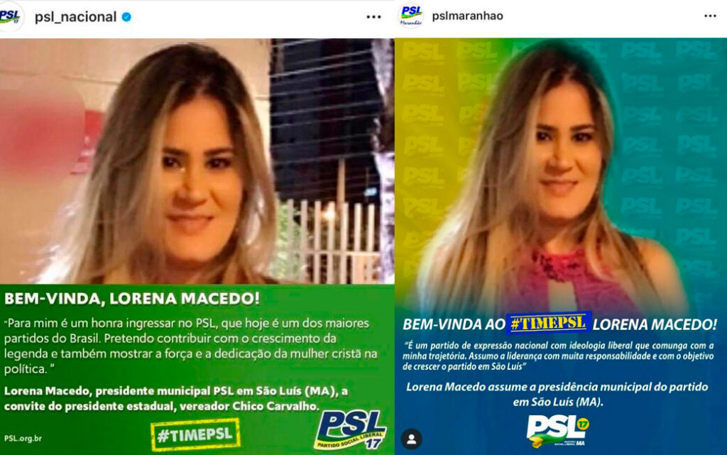 Além do documento acima, as redes sociais do PSL, tanto no Maranhão, quanto Nacional, não só destacou a chegada de Lorena Macedo ao partido, como também a parabenizou por assumir o comando do partido em São Luís.