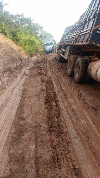 No vídeo, mostra que a estrada ficou interditada já que dois caminhões ficaram presos nos atoleiros lá existentes. Veja abaixo.