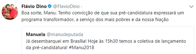 Manuela D’Ávila, em Nota, afirmou que foi procurada em maio por alguém que afirmava que “tinha obtido provas de graves atos ilícitos praticados por autoridades brasileiras”. Como a pessoa queria divulgar o material, a comunista afirmou ter passado o contato do jornalista Glenn Greenwald.