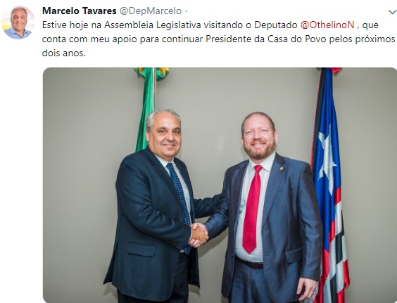 Tavares chegou a cogitar disputar a presidência da Assembleia, cargo que já ocupou no Governo Jackson Lago, mas com a reeleição de Othelino assegurada, a tendência é que Tavares fique mais próximo do governador, retornando a Casa Civil e viabilizando uma eventual ida para o TCE – Tribunal de Contas do Estado.