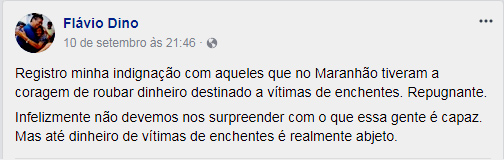 E o pior é que Flávio Dino nem pode se dizer espantado pela revelação desta segunda-feira, primeiro por se dizer profundo sabedor das normas e leis brasileiras e depois pelo fato do assunto ter sido tratado na passagem do presidente da Câmara Federal ao Maranhão, Rodrigo Maia (DEM).