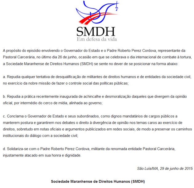 No entanto, a parlamentar preferiu o silêncio covarde e não omitiu nenhuma opinião sobre o destempero do governador Flávio Dino, que num ato desnecessário, acusou o padre Roberto Perez de ter feito críticas ao Sistema Carcerário do Governo do Maranhão pelo fato de ter ‘perdido o mensalinho’.