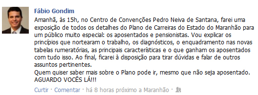 O Blog confirma que nesta quinta-feira (19), cialis às 15h, sales o secretário de Gestão e Previdência, Fábio Gondim, um dos principais responsáveis pela elaboração do Plano de Cargos e Salários, será o entrevistado do Programa Abrindo o Verbo, na Rádio Mirante AM.