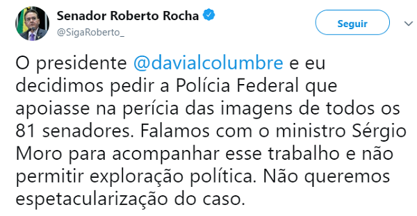 O senador e corregedor do Senado, Roberto Rocha, está responsável pela apuração da fraude durante a eleição para a Mesa Diretora do Senado Federal. O parlamentar maranhense afirmou, através das redes sociais, que terá o apoio da Polícia Federal e do ministro Sérgio Moro para concluir o caso.