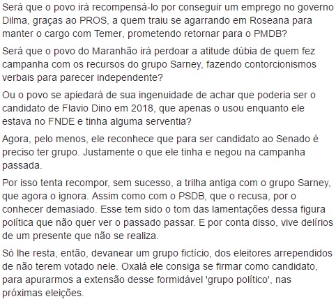 O senador maranhense Roberto Rocha (PSB) fez um artigo, publicado nas redes sociais, que deixa claro que numa eventual vacância na Presidência da República, o único caminho viável seria mesmo uma eleição indireta. Veja abaixo o artigo e tira suas próprias conclusões.