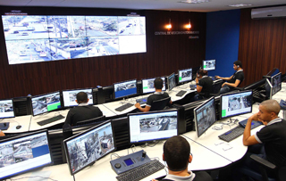 As imagens captadas nas vias e as informações operacionais do trânsito são enviadas à Central, onde 16 técnicos, divididos em quatro turnos de trabalho, fazem a análise das informações recebidas e disponibilizadas nos oito painéis de observação.
