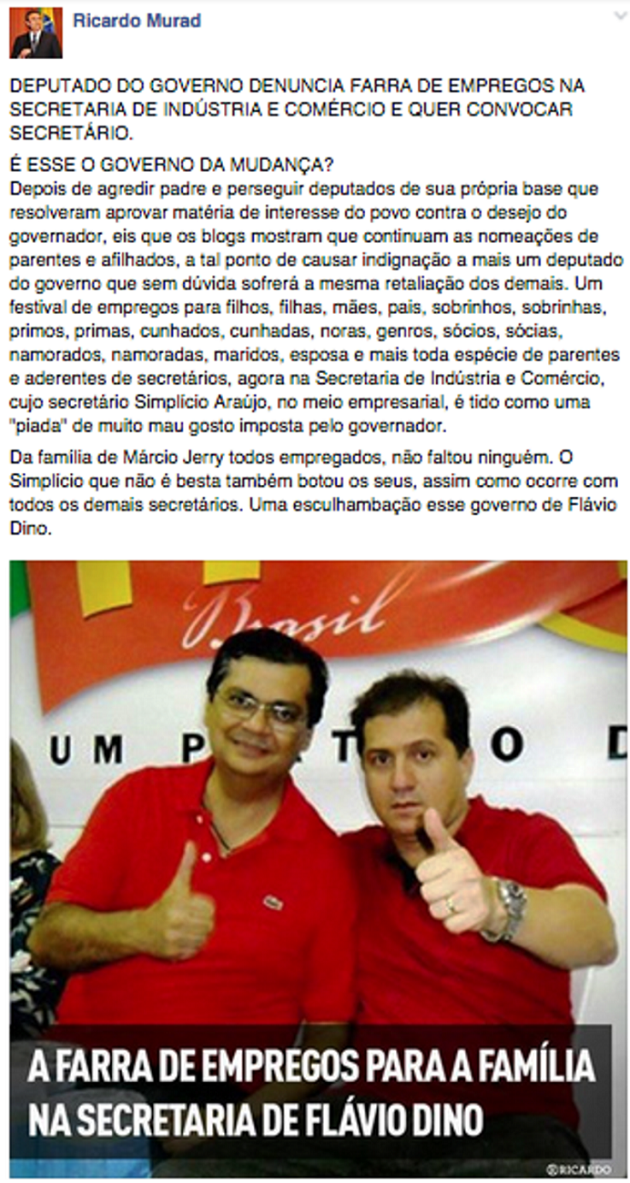 Os deputados oposicionistas também repercutiram o grave discurso de Raimundo Cutrim, mas isso é assunto para uma outra postagem.